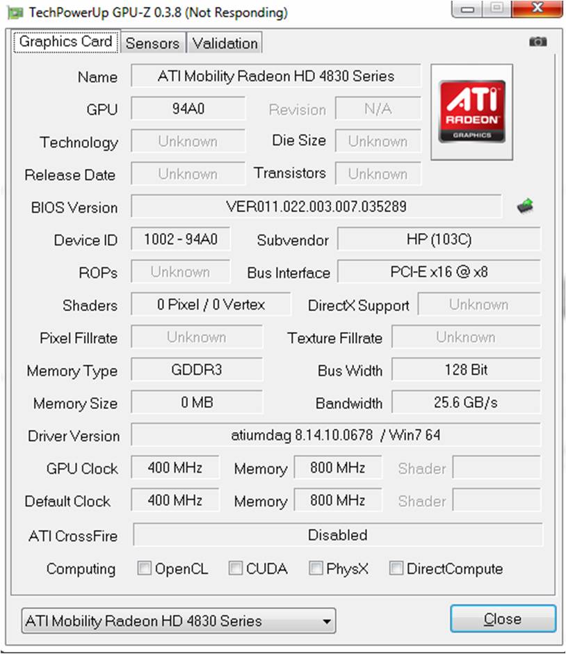 My GPUz reading...it does say GDDR3, but earlier this thread, HP said DDR3 only...im confused with that GPUz reading, it is not recognizing my GPU/
