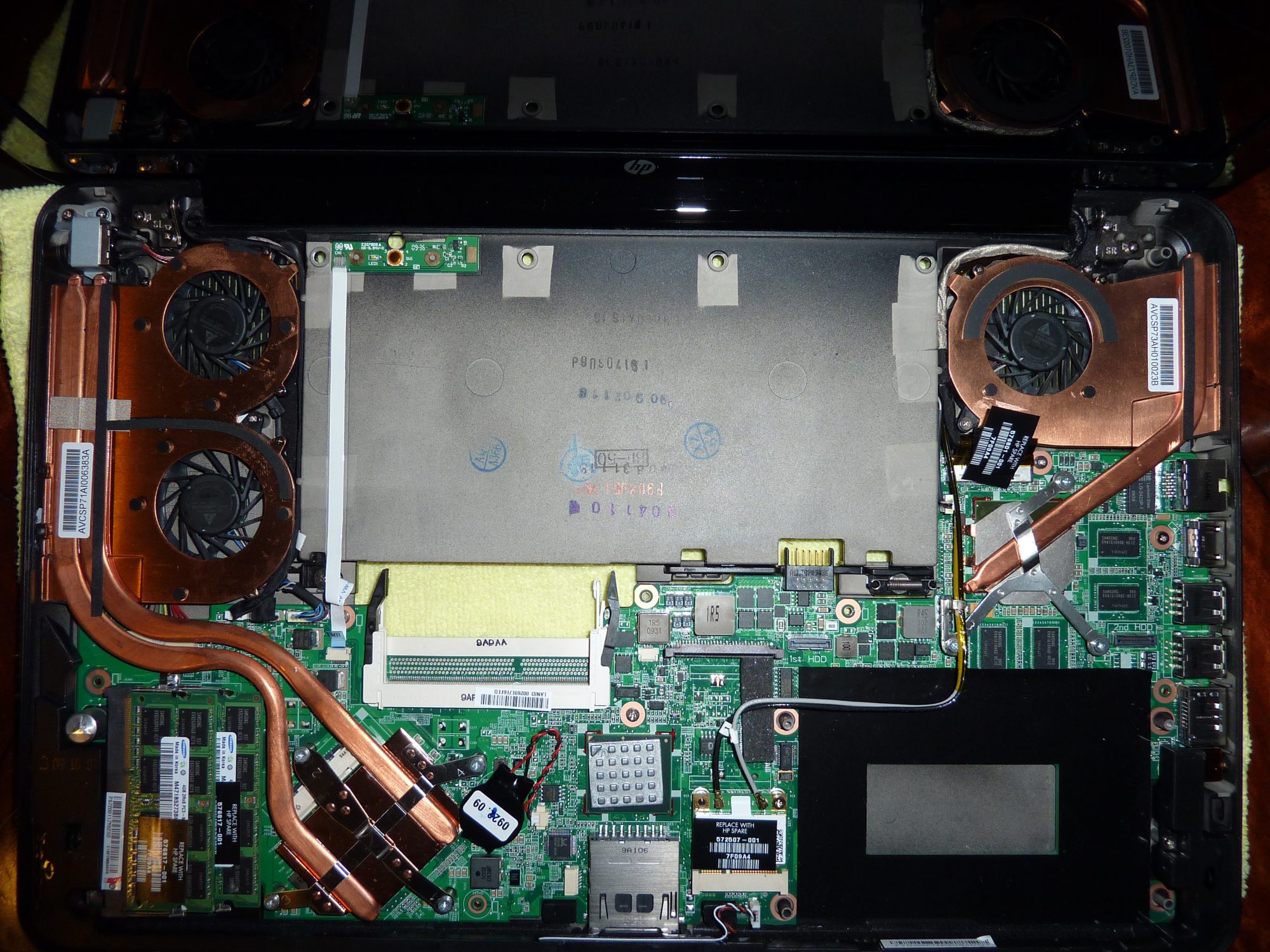 So I had this noise from the GPU fan, like it hit a loose cable or something, and opened up my Envy to see what's going on. I stopped taking things apart when I saw the tiny cable connectors inside (didn't want to break cables by mistake). However, I did get a good look at what was causing the fan noise.