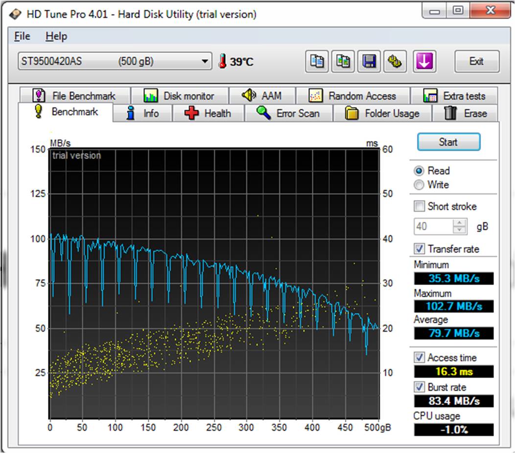 Those are good numbers, compared to what the Seagate 500GB 7200RPM does...Attached Files: