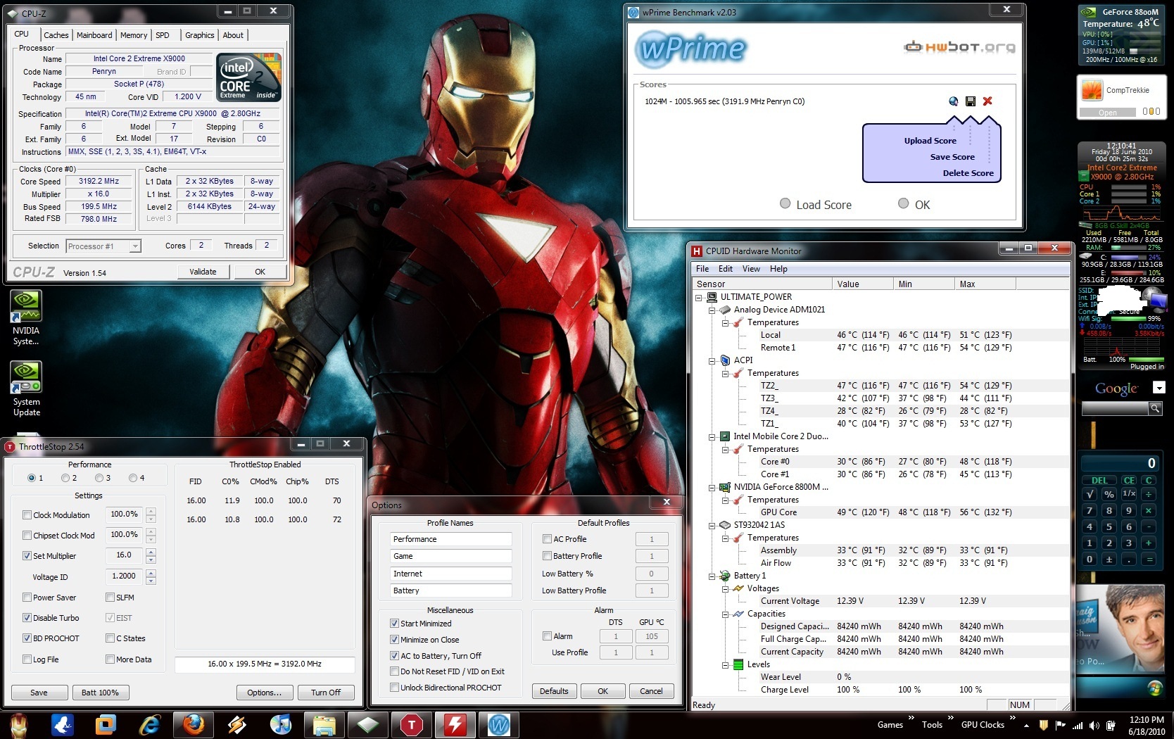 Here is my first go, there were no errors in wPrime. Next to find the safest limit. I like the options that are given in the Throttlestop program. I left the options window open