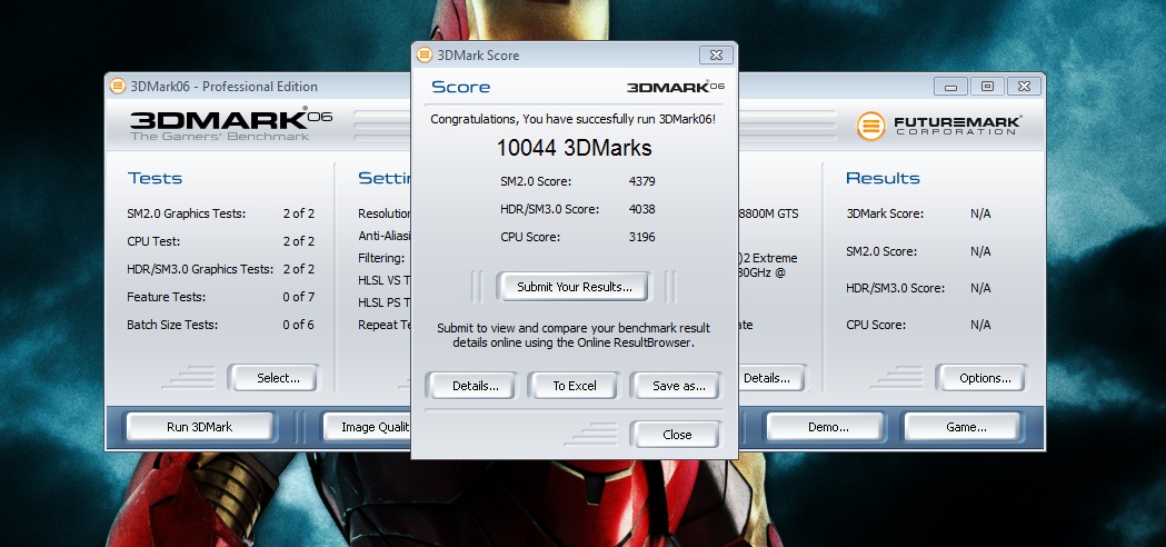 My 3DMark06 score is crazy 10044. My CPU score went from 1864 to 3169. I attached a pic of that as well.