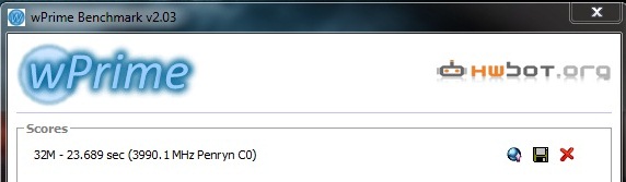 As for x20 - 4.0GHz I could not keep it stable in the long run test of wPrime. Applications would start crashing and eventually BSOD. It was stable @ 1.485 VID if I did not put it under load for long. I was also able to run the wPrime short test without issue. (Pic below) The long test could not get more than 40% even when I bumped the VID to 1.500. The temps were much higher, still in spec, but higher then I would want to run on a regular basis.
