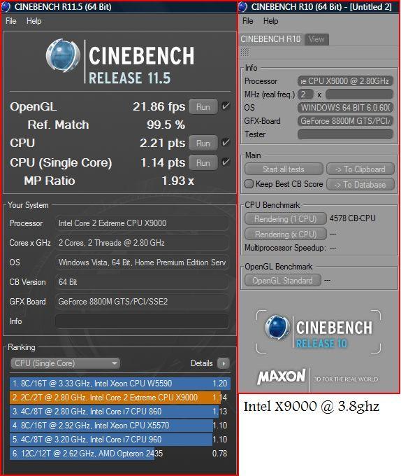 Some single core 3.8ghz benchies with Cinebench attached.
