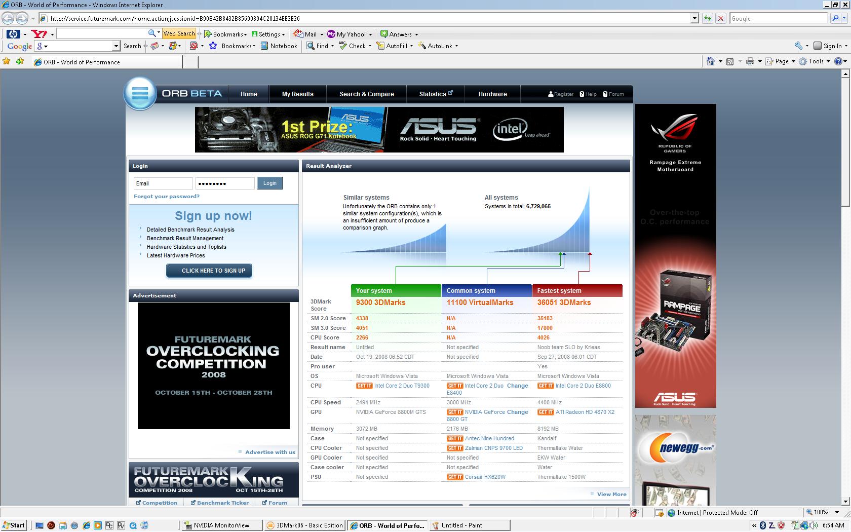 Here is an update: Ran a test using 650/1650/925, adjusting shaders using the new Ntune utility...pushing my limits of comfort as temps rose to 72C. Score was duh, duh, duhhhh....9556. Screenshot below. Ran ATI tool first and no artifacts for 1 1/2 hours, but the temp still bothers me a little. It only got to 68C during artifact test, which is unusual. Usually 3dMark test runs cooler than ATI....