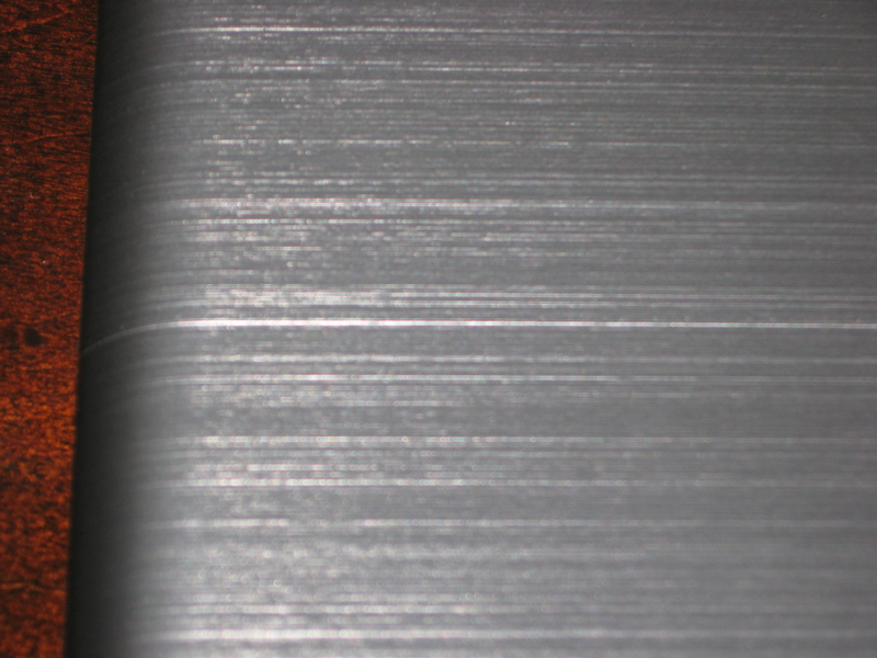 Along the top there's a line all the way across. To me, it seems whatever put the pattern in the top "cut" a bit too deep. Just think of all the lines in the brushed finish on the top; one seems to be deeper than the others. It's only cosmetic, but you can really feel the difference when running your finger over it. Everything else about this laptop is perfect, part of me says I can live with it, but part of me says I paid a lot for this laptop. See pics.