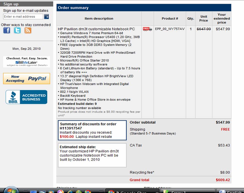 Hi. Newbie here. On ebay, HP Pavilion Dm3-1044nr is listed for $399 buy it now. Is this a good deal? I just need something to surf the web and do word processing.