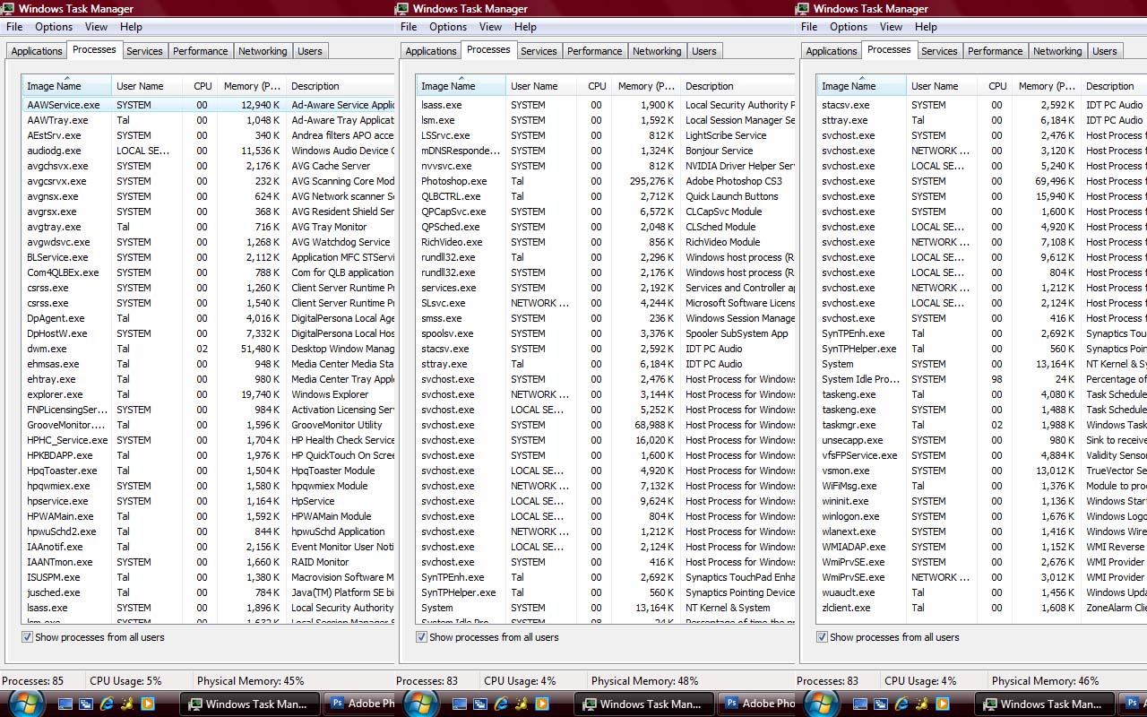 5. Please Post List Of Running processes on here. (Screenshot if possible) Win+Insert/print