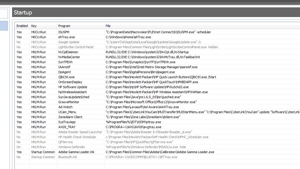 7. List of Processes that run durring start up? (Win+R then "Msconfig" then "Startup")