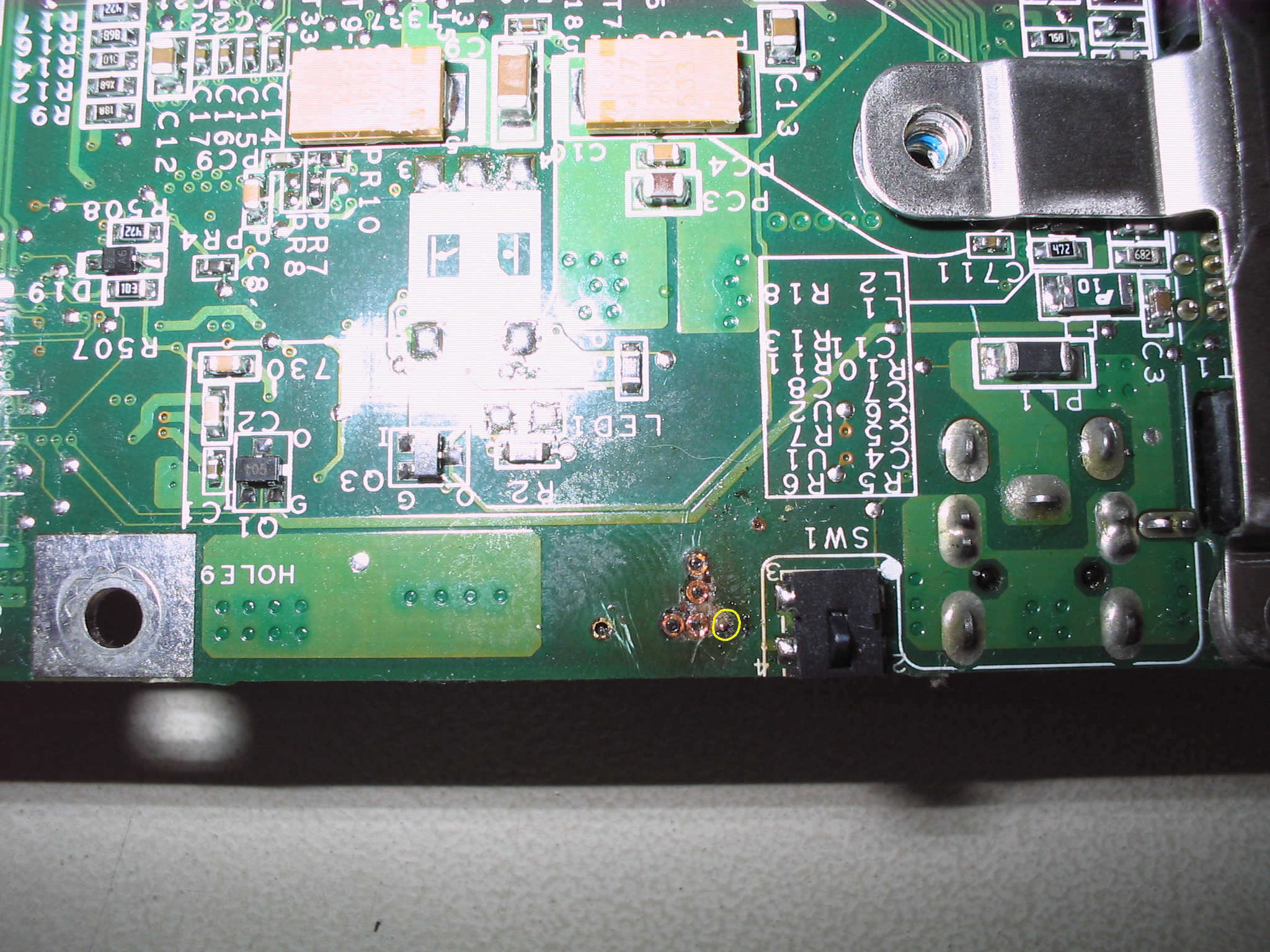 Laptop starts, shuts itself off. Sometimes will boot to Windows, then shut off. Now, obviously this thing is toast. But look at that thing..what's with the wire? What's with the huge blob of solder? Did somebody just cobble something up here so it would at least still power on, giving some hope of fixing it? Does anybody here think it's fixable if I replaced that chip? Is it a power mosfet? Sorry no pics of the reverse side as I haven't "progressed" to that point yet. Thanks for any ideas.
