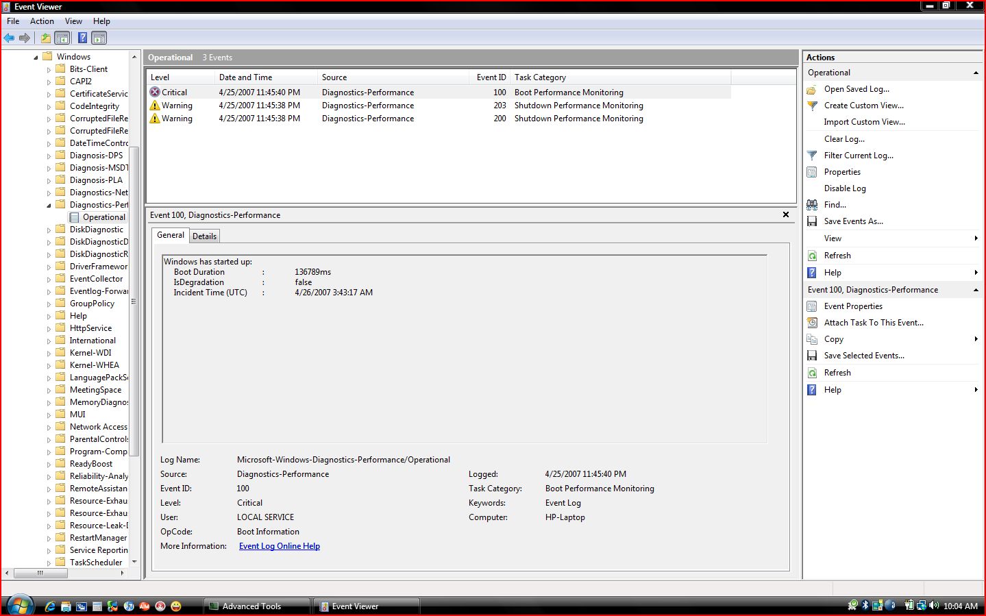 Ok, I have said this in other posts, but my boot time is around 3 min and my shutdown is long as well, I checked the "performance Monitor" and this is a quick snapshot of what I get. I just cleared it out and then did a restart. it is always showing either warnings as well as Critical. Vista what a joy.. Any suggestions??