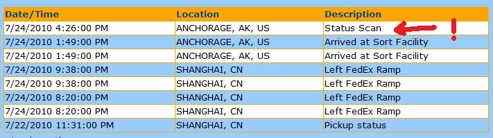 7/23/2010 4:43:00 PM ROCKLIN, CA, US Picked up by FedEx -