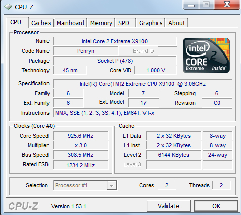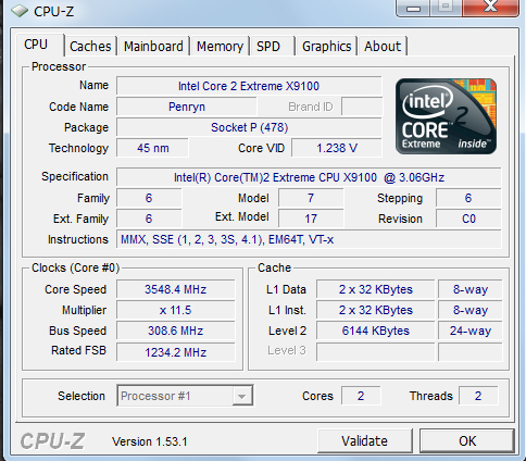Intel core 2 extreme x9100 ( idare not press the overclock button as it goes up proper
