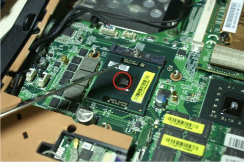 4. (See Pic 4) Unscrew the four screws highlighted on the picture to expose the CPU core.