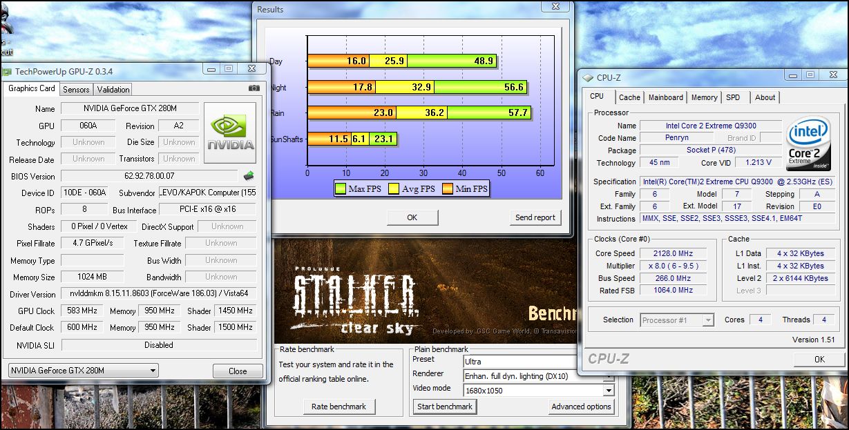 I ran that benchmark, 1680 x 1050, ultra preset, no AA, and my scores are nowhere near yours (P8600 @ 20% OC). I might post them within the next couple of days sometime.