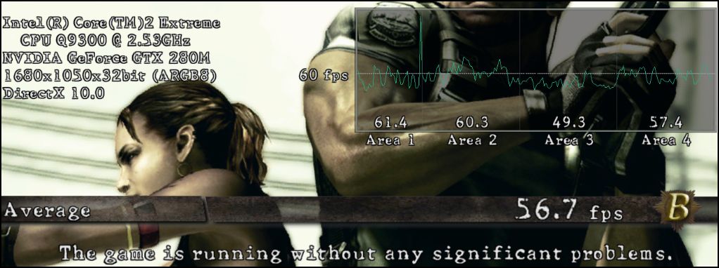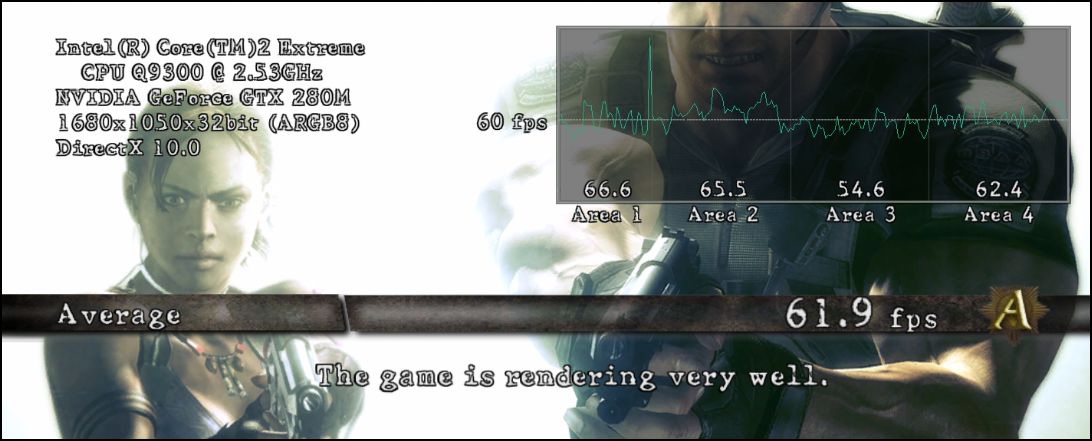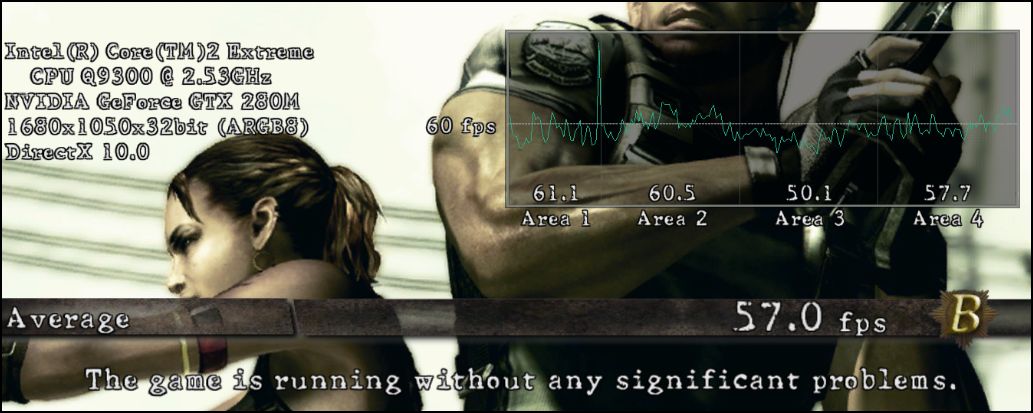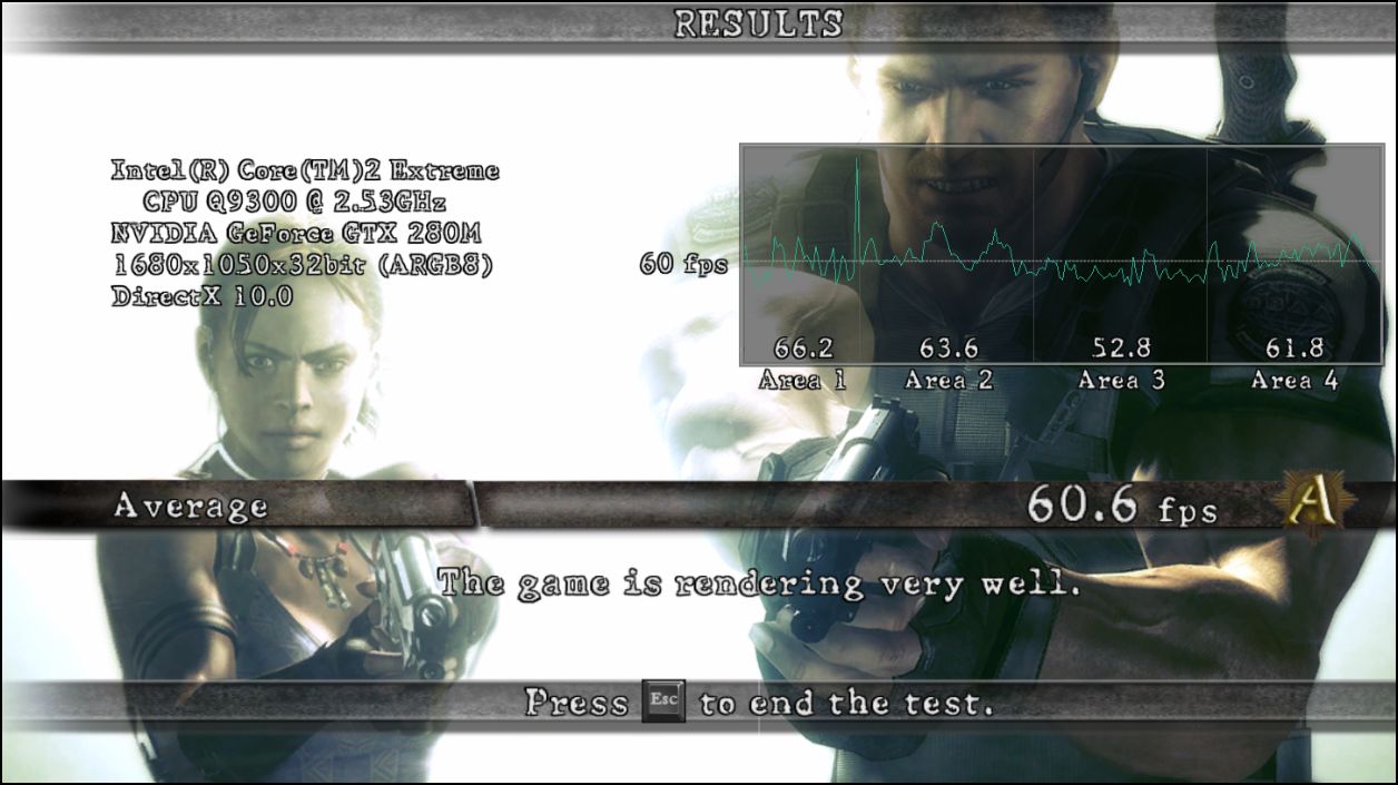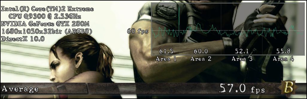 Here's my RE5 benchmark DX10 all high with blur overclocked. The benchmark has been giving me issues, but I've tracked it down to my undervolt... strange since it doesn't give me issues playing Bioshock, Assassins Creed, or GTA IV for hours.