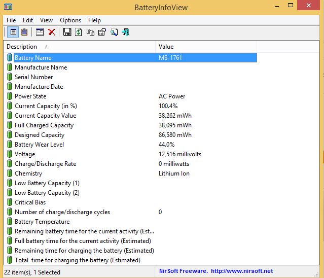 What wear level is the battery at?