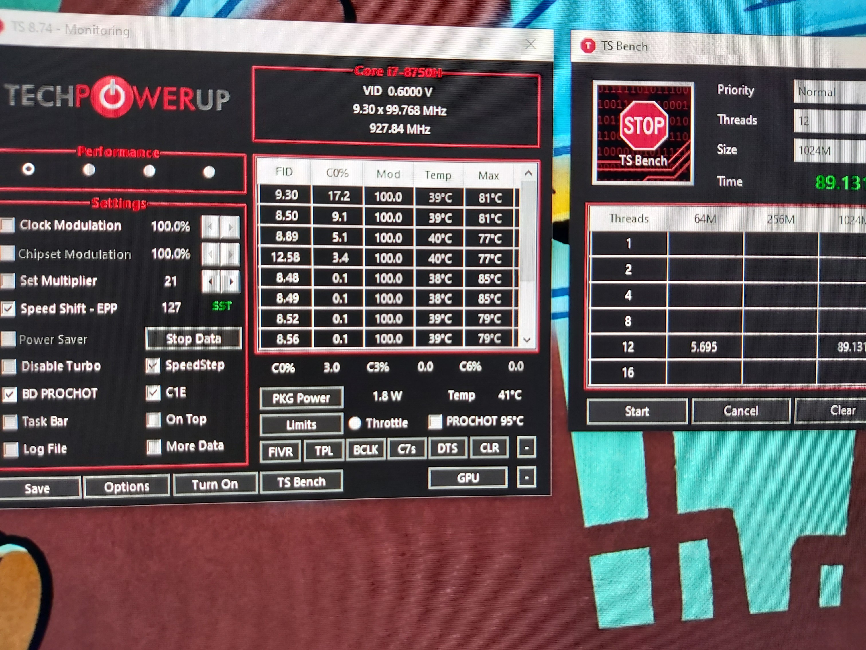 Do that test..really I wanna see how noctua works.. we have same laptop with same cpu and same country ahha. When finish my son I will post a ts bench 1024 -
