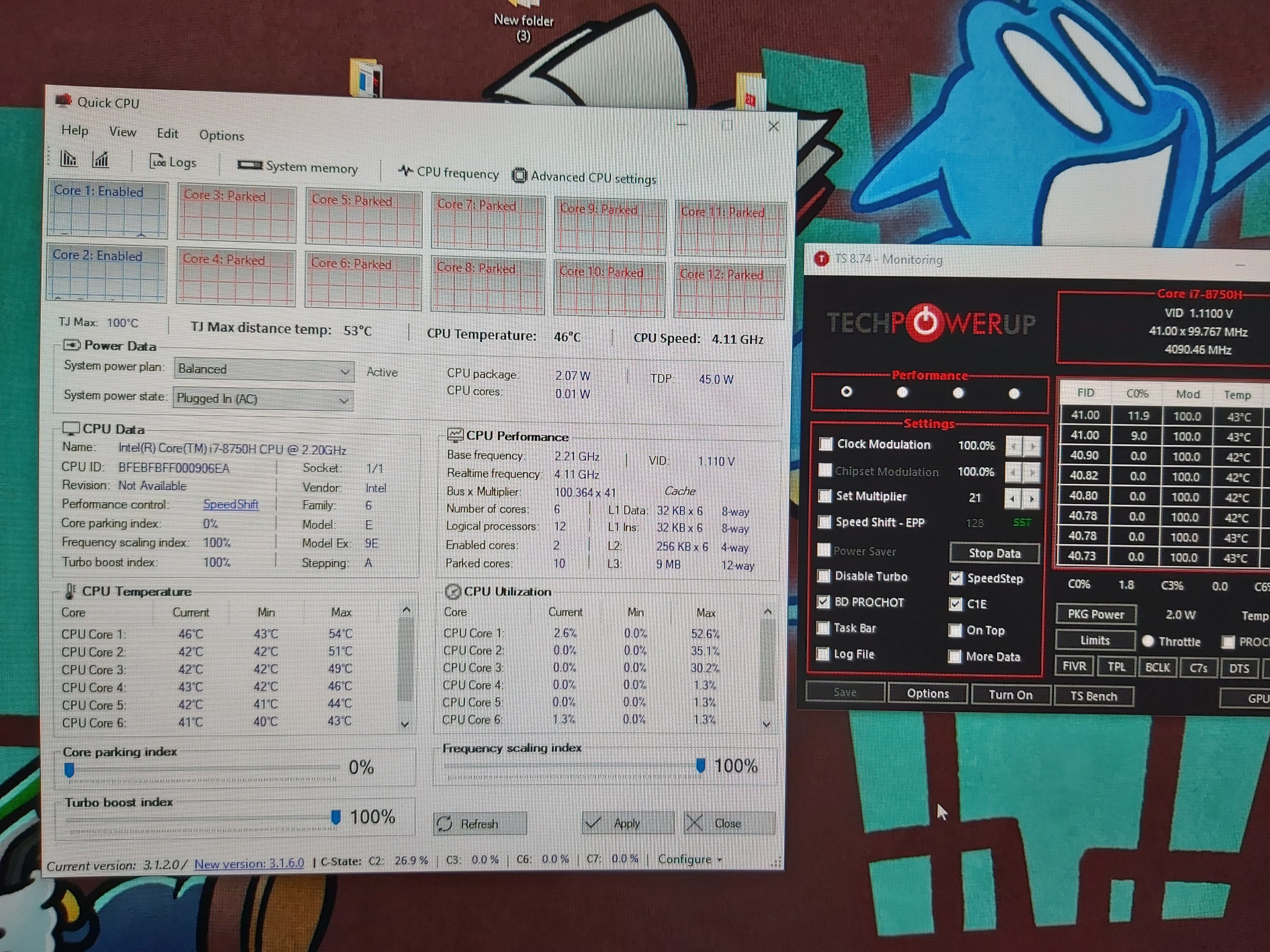 As u can see at my pic,at the moment 2 cores its active.. u can see and at throttlestop at CO% just 2 cores its active.
