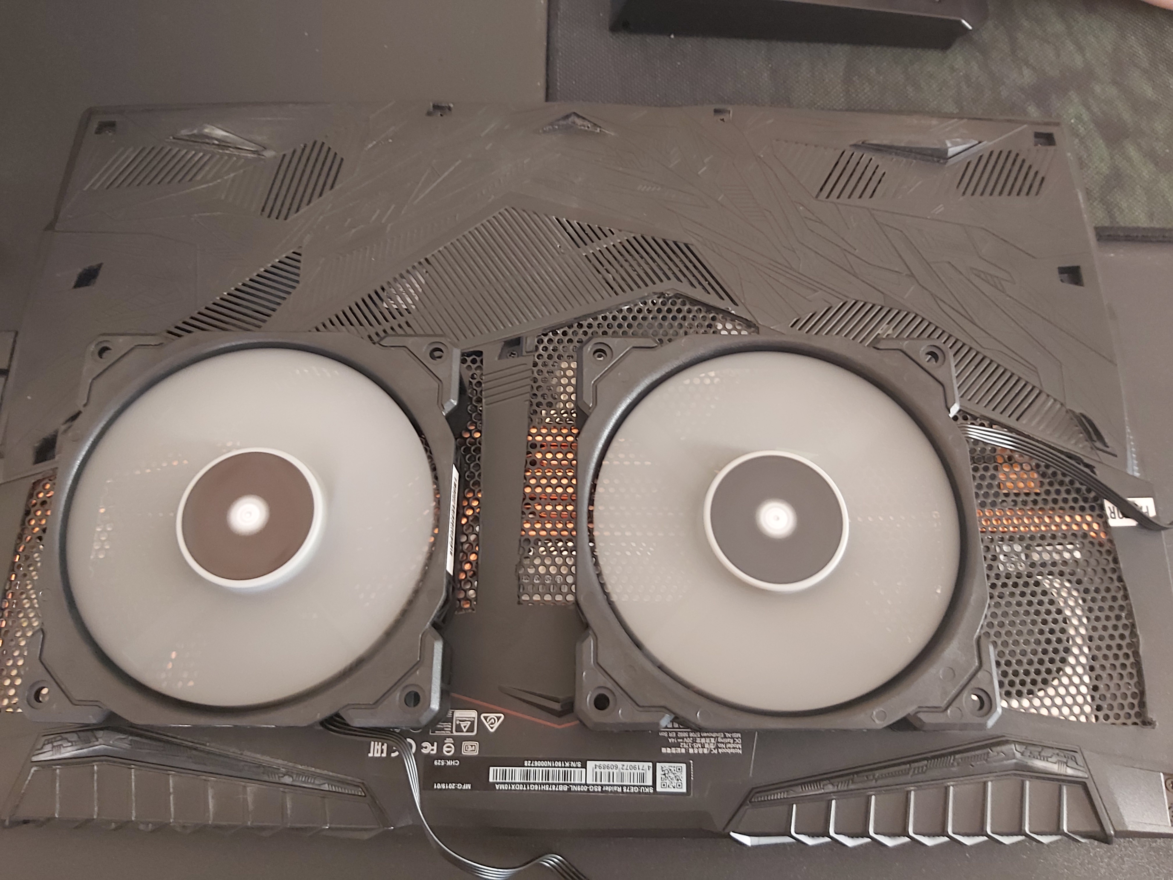 I just removed from my cooling pad that 4 crap fans it has.and i added only one strong fan in the center and push air that I show in pic. Fans under laptop fans doesnt do nothing.u need push air at gpu and cpu chip.