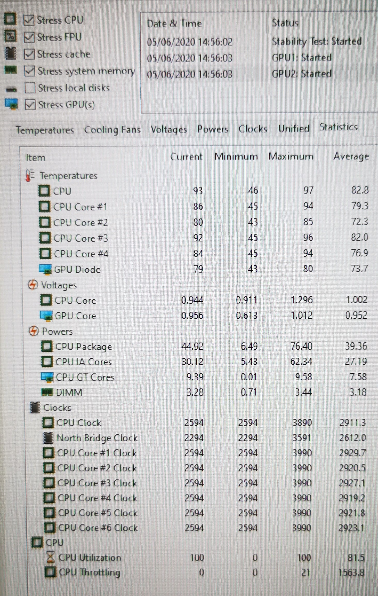 So I have read several articles and watched several videos on thermal throttling and ways to reduce the temps using undervolting etc, most of which I think I understood but just went with the flow. I downloaded AIDA64 as it was a suggested tool to actually see if the laptop is suffering from thermal throttling. Loaded it up and selected the stability test and before actually stressing the laptop out a red message appeared "CPU