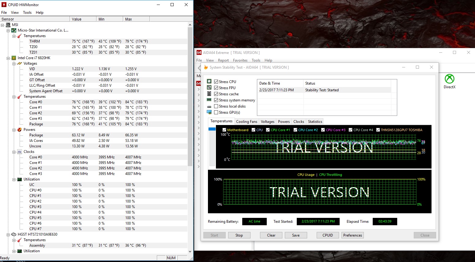 I finally received my GT73VR with 6820HK/GTX 1080. These are the results after 2 hours and 43 minutes of AIDA64 test. The CPU fan was running at 52%. The following changes I made in BIOS: