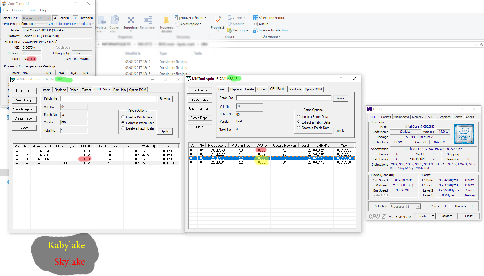 They both have a microcode for skylake 06E3 (6820HK) but the 313 have also microcode for Kabylake 06E8/9 (7820hk etc) (not in .10A)