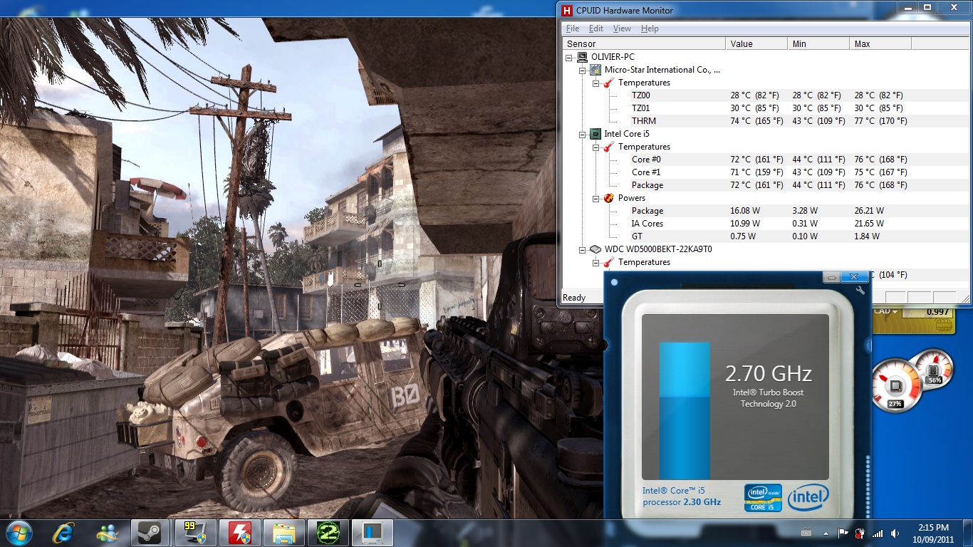 Ok so I tested the gaming performance with Call of Duty Modern Warfare 2. I played for ~25 minutes and the performance was stable. You can click on the images for the results. The first 2 images are showing the settings. I put everything on extra. The next 2 images are showing the FPS in the bottom right corner. They were considerably high. It only lagged a few times when the graphic content got pretty intense like on the picture where it shows 31 FPS (pretty much the lowest FPS I got). The last image is showing the temperatures and CPU status. You can also see the desktop gadget showing the CPU working at only 27% (I don't know if it is a reliable source). I didn't notice any throttling during my gaming session. The laptop didn't feel as hot as I imagined. Yes it did become a bit hot to the touch but it stayed kind of cool for a laptop this size. So far I am impressed with the gaming performance since I rarely got any lag at max settings and it was totally playable.