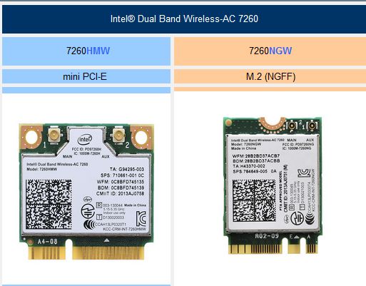 Right now the only choices for M.2 wireless cards are the Intel AC-7260NGW and the Killer N1525.The Intel AC-7265 may be available in November and it is M.2 also.