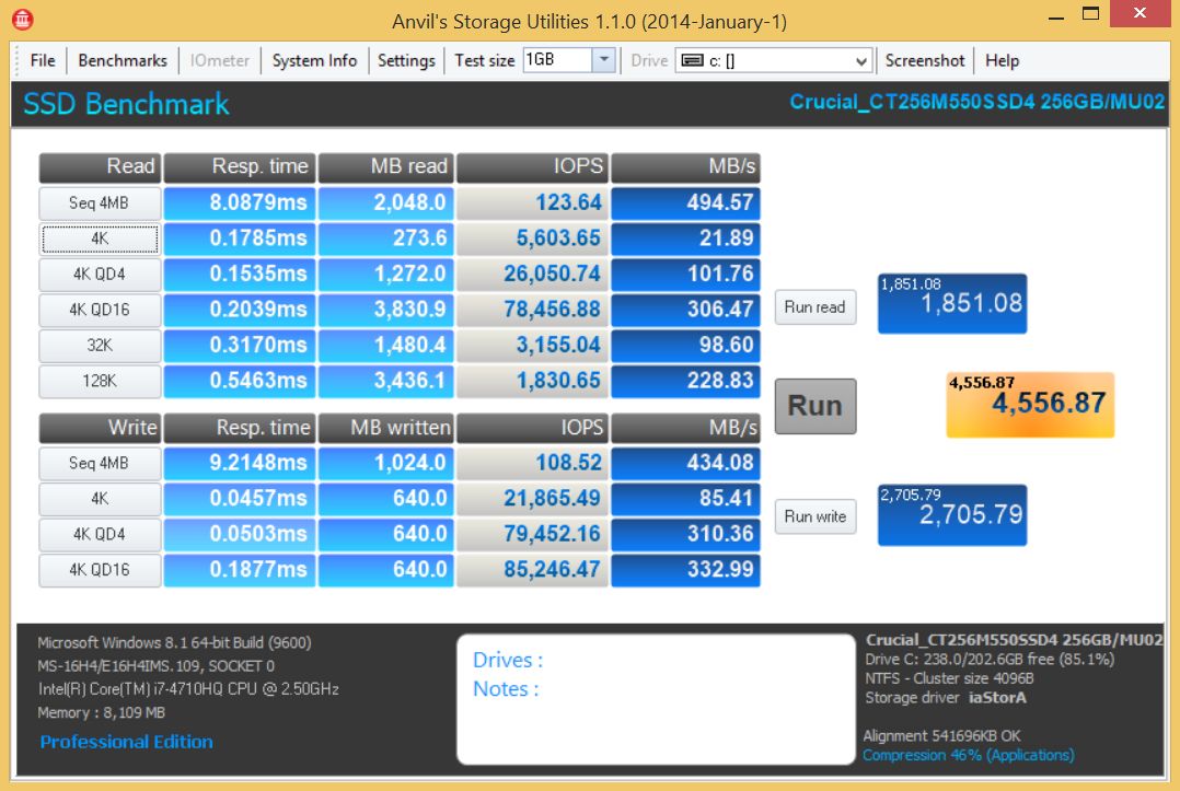 The Anvil Storage Utilities benchmark is set to 46% mix of compressed and uncompressible data that is close to what workfows normally use.Attached Files: