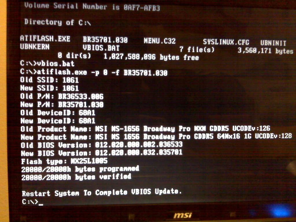 So basically go on the msi website and download the latest vbios (File HERE). If you want to edit use RBE and select BR35701.030 file, dont worry if it is not in ROM format, after editing dont change format just save and leave as it is. Get a spare usb drive and make it into a bootable drive. This can be done by going into the UNetbootin website and download the program for windows. Then run it and select freedos as distributor and make sure the path file is where the usb drive is in. Then click ok and it will start downloading, after it finishes exit and drag/drop the vbios files (excluding the pdf file) into the flash drive. The shut down and once booting pres f11 and select your flash drive and press enter to boot. A list of options should not come up, select FREEDOS safe mode (dont load any drivers). Now this is the annoying part.
