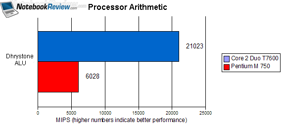 I would like to see a comparison of a Core 2 Duo notebook with a similarly equipped Core Duo notebook. The Super Pi numbers indicate that with regard to raw processing power a Core 2 Duo does not offer much increase in performance over a Core Duo.