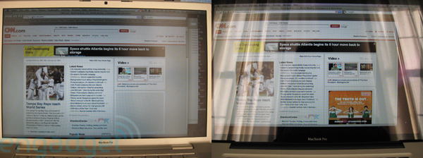 That is precisely the point - glossy screens from any manufacturer are essentially useless in "broad daylight". What I take issue with in this review (and others like it) is the playing down of shortcomings in Apple's hardware or design - as if the Macbook is an exception to the rule of glossy displays' susceptibility to reflections - when in fact the latest display has a glass covering which is qualitatively different ( more reflective) from other glossy displays. This difference should be addressed in any thoughtful review. From engadget's evenhanded (IMO) REVIEW: