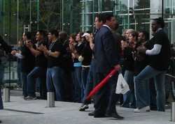 I kept hearing cheers and clapping from time to time, whenever anyone came out of The Cube, and I assumed that they came from the crowd. However, as I eventually discovered, these cheers originated from Apple's employees standing near the entrance! Yes, their job was to cheer and to clap. Crazy!