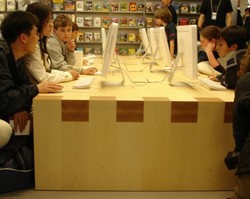 Genius Bar is where Apple holds its free workshops on many topics including Switch at Six for prospective switchers from Windows to OS X and Getting Started for Switchers for those that have already made the decision to take the leap. The SoHo Store in New York offers a larger selection of workshops including the Mac OS X Workshop and the Mac OS X Tips and Tricks Workshop. Other workshop topics include using popular Mac applications, from iPod and iTunes to professional Apple software such as Aperture and Final Cut Pro. Click here (http://www.apple.com/retail/fifthavenue/week/20060521.html) to view this week's workshop schedule at Apple Store Fifth Avenue.