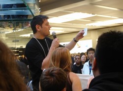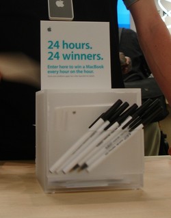 Back to more excitement. To celebrate the grand opening, Apple is holding a 24 hour giveaway -- one Macbook per hour, on the hour.