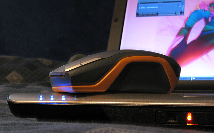 The mouse is unlike any other notebook mouse, let alone wireless, you've ever seen. It has forward backward buttons, something which was exclusively on larger desktop mice, and it is a first in the market. It also has a scroll wheel, which I found good, but it did not have that familiar clickity sound and feel, it was there, just not as much. The scroll wheel also had 4 way virtual scrolling. Powered by Twin Lasers, at 832nm-853nm(No clue what this means...), it screams to have powerful tracking. The USB is high speed 2.0 with 2.4ghz wireless, unlike the traditional 800mhz wireless. Not only that, the USB stick itself is very small and sleek, which does not hog any space which may be needed for larger USB inputs, such as USB memory sticks.