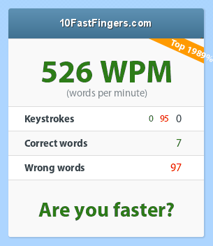 Mine: http://10fastfingers.com/speedtests/generate_screenshot_result/99_526_0_0_95_7_97.17_1989_70265