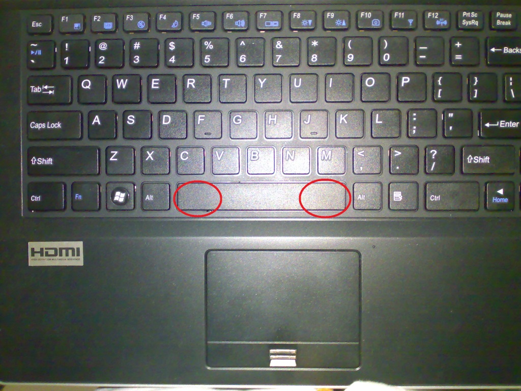 When you guys press the spacebar of your W860CU in the encircled areas of my picture attachment, is it registering all the time? And is the left encircled area not soft with your keyboards?