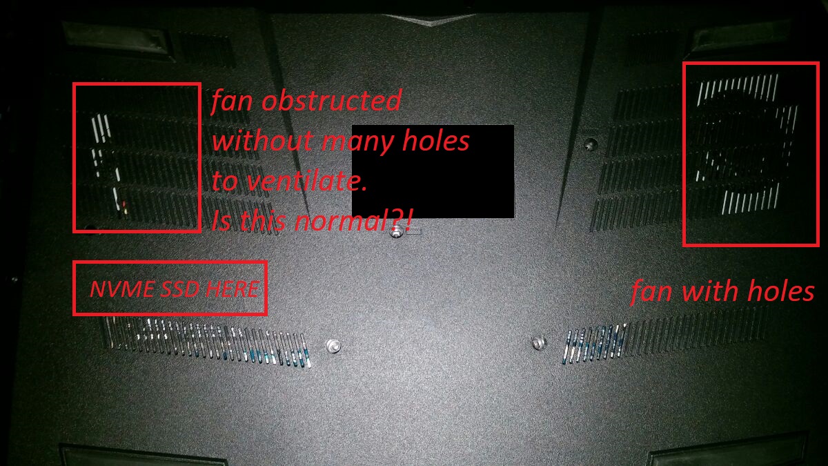 so I'm having a problem with this notebook. I've installed a NVMe samsung 860 EVO drive and it gets so hot during load +100C that the notebook shuts down. is it bc of the drive? faulty cooling system? I've noticed there isn't many holes on the bottom part over the fan like on the other side. is this normal? how to solve?