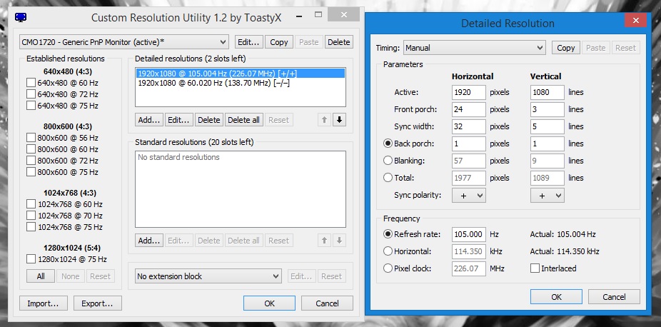 And yeah i can oc with the nVidia drivers about 2hz more too, but it lacks the support that games actually use the higher refresh rate and i don't want to use borderless everytime, with CRU refresh rates are used like i set i to.