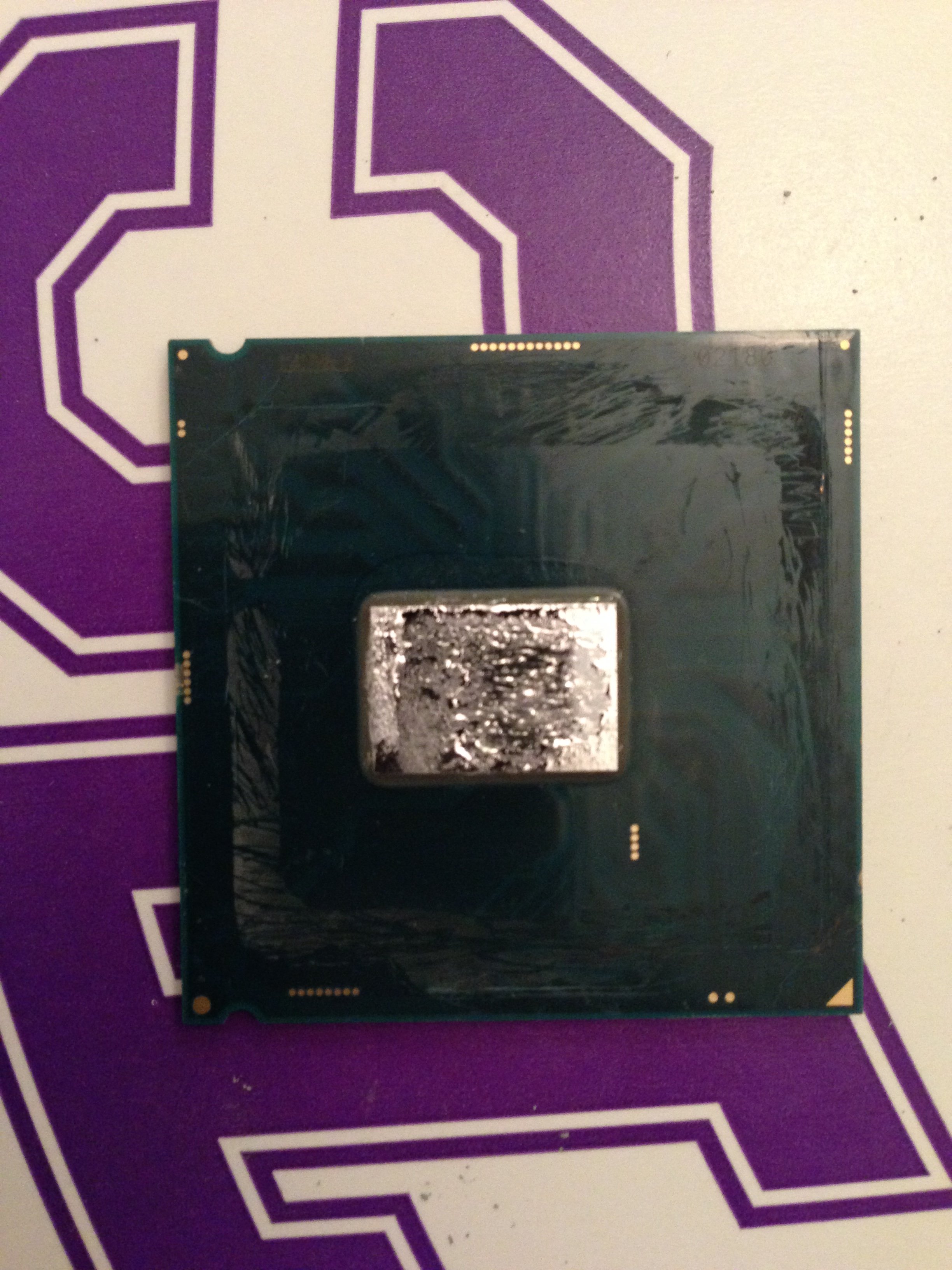 Thanks for the quick reply. I was extremely careful with pushing through the adhesive, to the point where it took me almost an hour lol. Doesn't mean that I can't make mistakes, as I remember I could have possibly touched it once. However when I looked at the processor everything looked spotless. I'm uploading a picture I took but granted: This is with the CLU still on it.