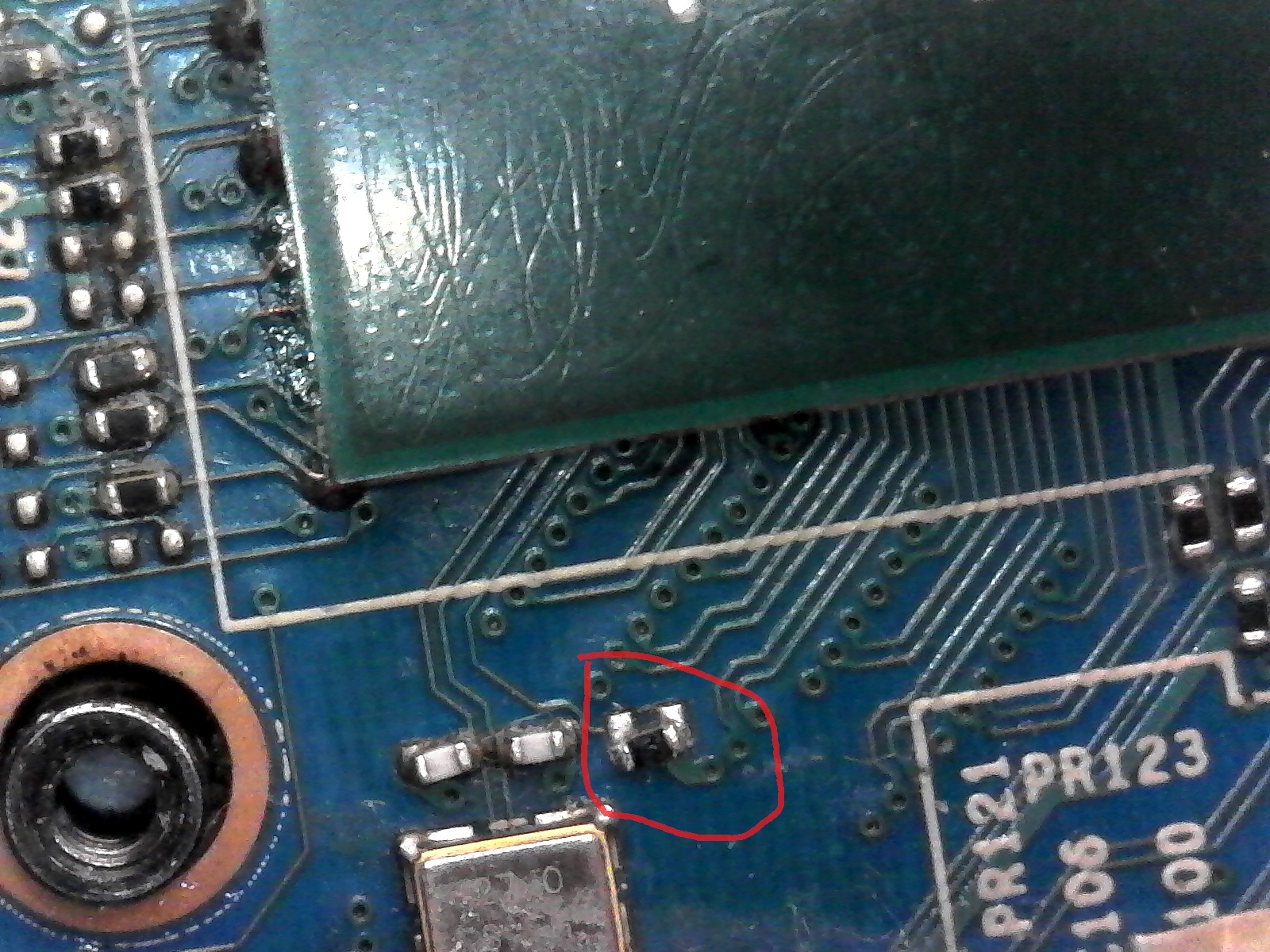 That part does looked to have slipped from the heat, a mutli meter would tell you if it's not connected (measure pad and part for continuity and matching value).