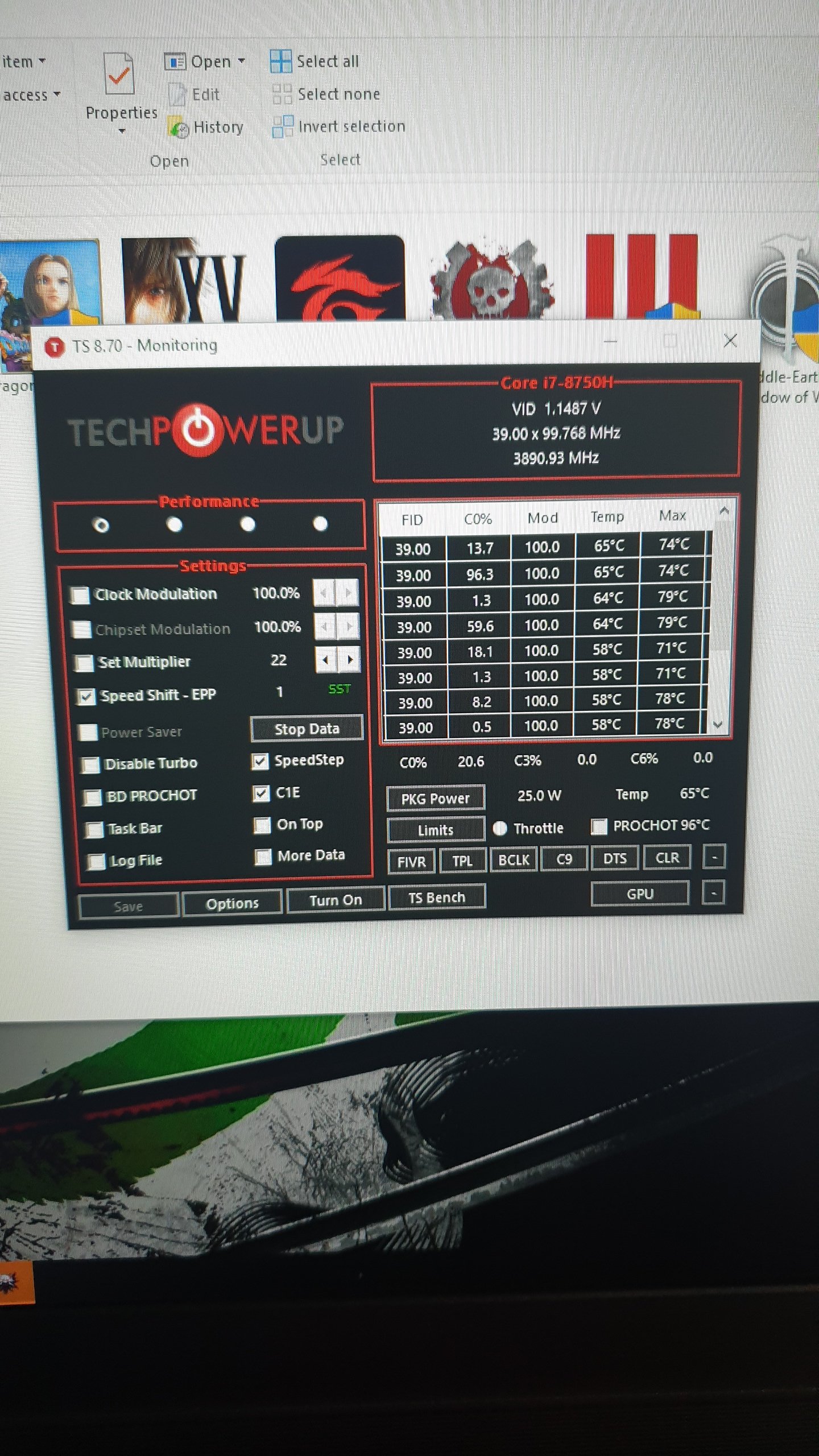 Fixed the tdp and core clocks by setting the speedshift in throttlestop to "1". Im now getting constant 3.9ghz while gaming and increased fps by 3 to 5 haha. However clockspeeds remain at turbo boost at 3.9ghz to 4.1 ghz even when idle. Is this ok to let it boost like this all the time?