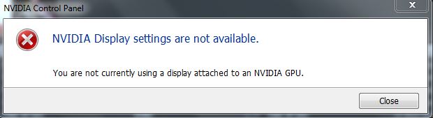 I've been using my W110ER for the past 2 months and everything has been fine. But all of a sudden I can't open up the Nvidia control panel, It give me the error message " Nvidia Display Settings Not Available, You are not currently using a display attached to an NVIDIA GPU" (Pic attached)