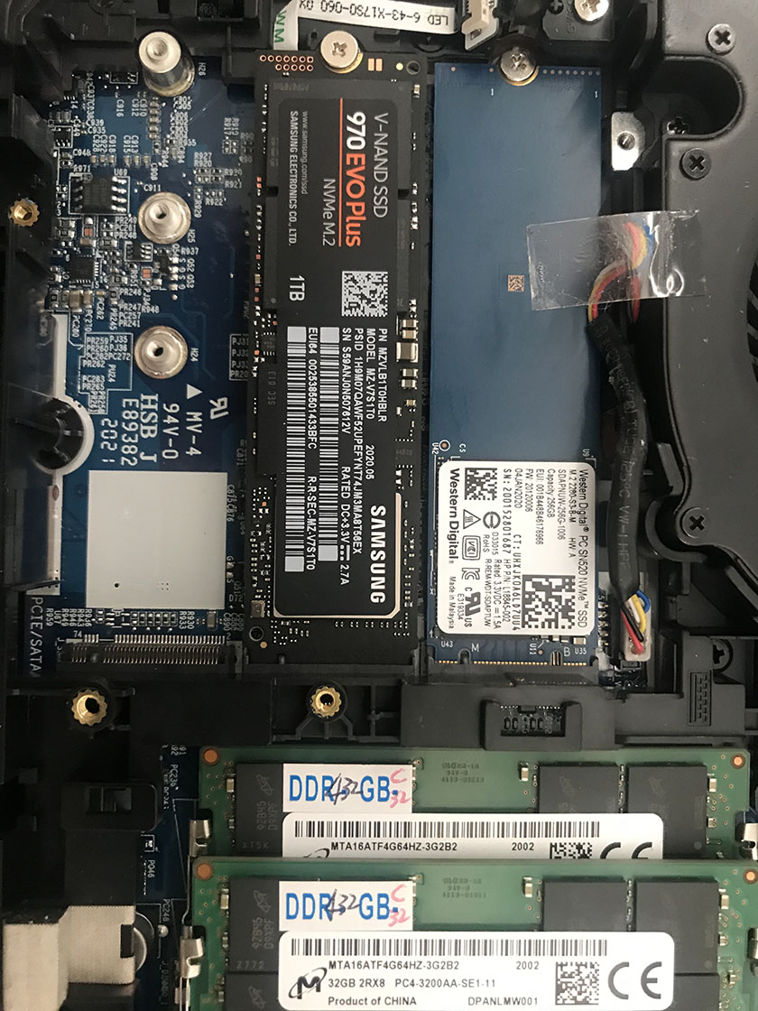 The laptop is blissfully fast, opens programs in a flash, and it's a beaute. It recognizes the 64GB RAM, but, it does not recognize the 1TB SSD. If I open Device Manager and go down to Disk Drives it's there alongside the WDC PC SN520 256GB drive. When I restart and go into the Bios, both drives are shown.