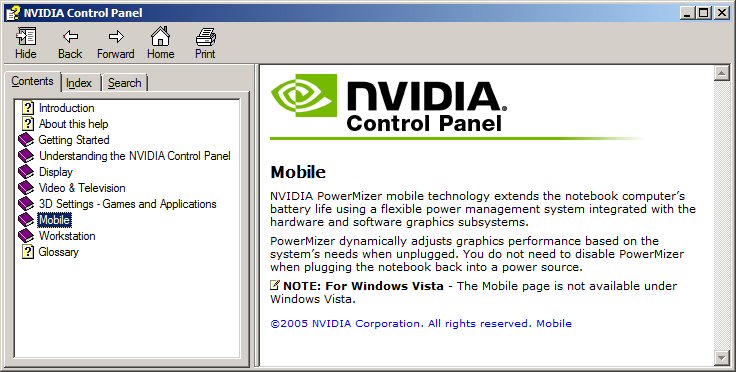 Regarding the GPU and PowerMizer, I just found the attached in Nvidia's help.
