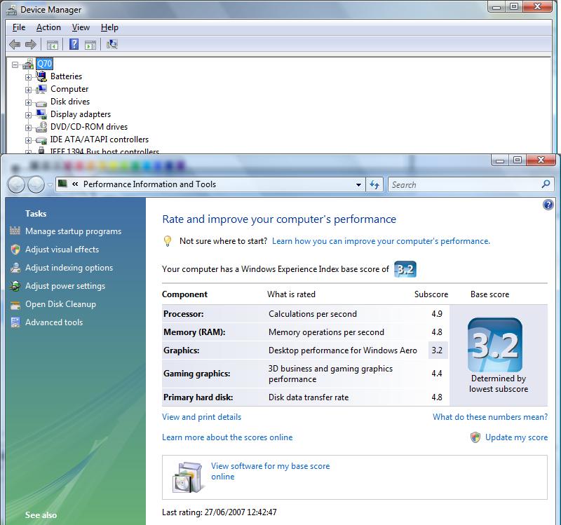 The other big question is the GPU. The Vista Experience Index is worse than the ATI 1250M IGP in the R20.