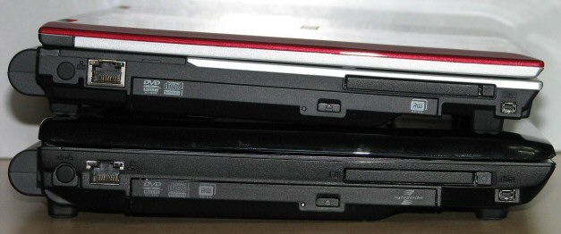 2. Left side view of Q70 with Q35 on top. The positions of the ports line up if measured from the back left corner of the computer.