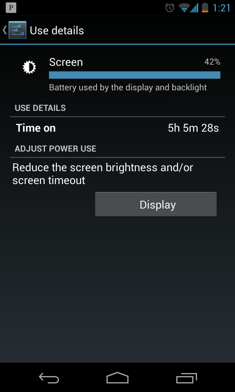 Pretty happy with the battery life on the Nexus 4. Wifi on 100% of the time (wasn't always connected to a network), sync on.