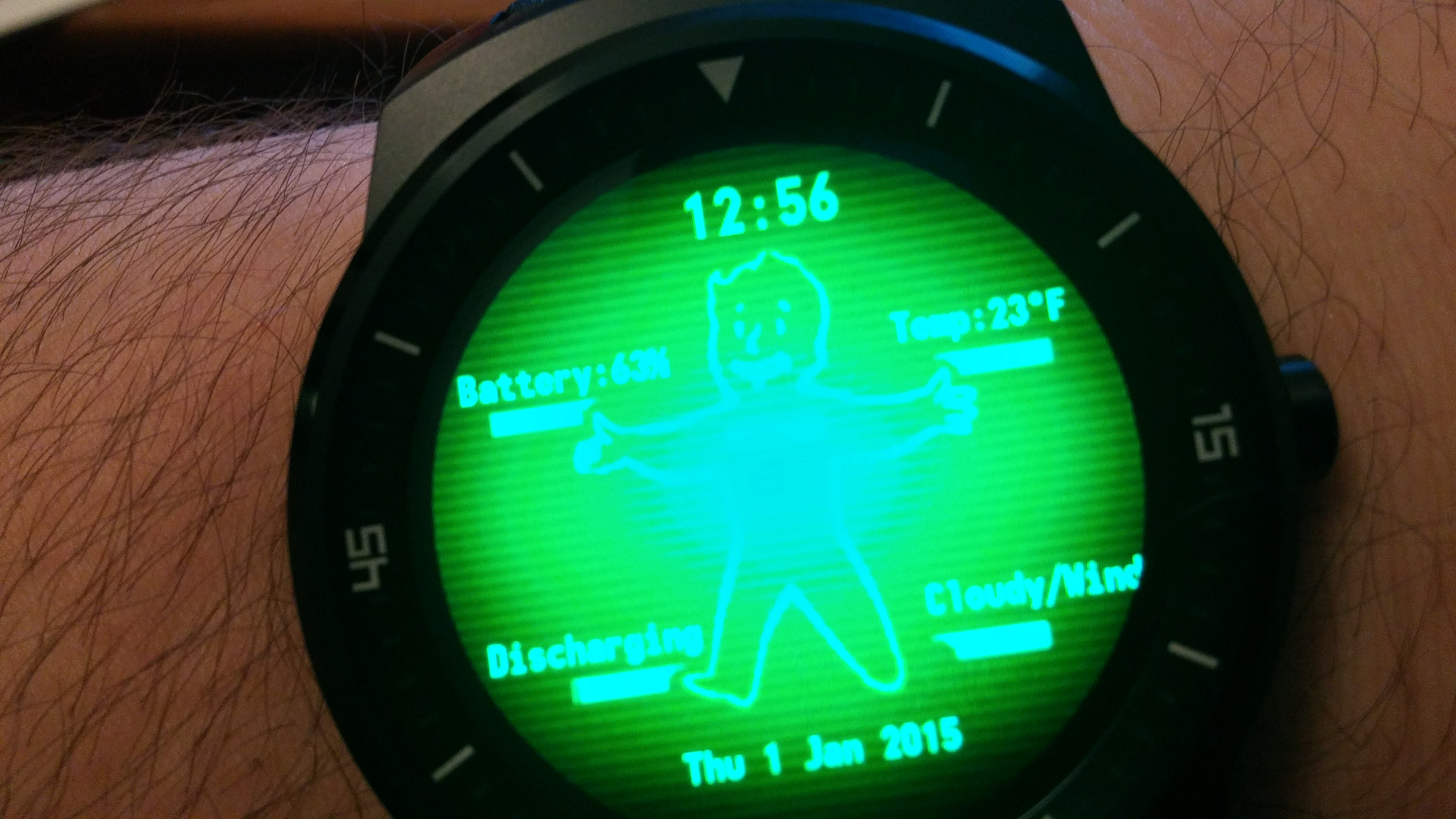 So, I ended up getting a smartwatch. Specifically, the LG G Watch R. I narrowed it down to that or the Moto 360, as my only real requirement was a round face, and those are pretty much the only choices. The GWR was $50 more, but that $50 bought a faster processor, more memory, larger battery with longer life, and a higher display resolution, and the display covers the full circle (the Moto 360 has a "flat tire" cutoff at the bottom to house the ambient light sensor). Overall, I'm happy with it. For starters, as a watch, it's great. Always synced to my phone so I never have to worry about the date or time being off, and literally infinite possibilities for faces. The watch comes with 20 or so pre-installed, and you can download new ones, as well as apps to make your own. I usually roll with a mock analog face with dials for date, weather and watch battery. But I occasionally switch to the Fallout Pip-Boy interface or LCARS from Star Trek for the purposes of showing it off